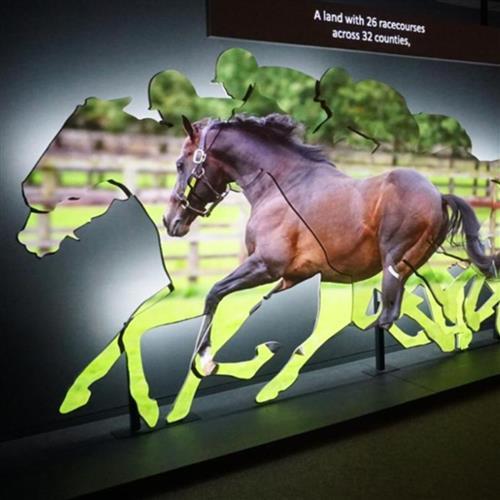 Centraal in de attractie staat een meeslepende (spel)ervaring die de bezoeker laat zien hoe een volbloed van veulen tot finish wordt getraind en gebracht tot de racedag. Via de door ons ontwikkelde tablet game krijgen bezoekers de mogelijkheid om een eigen racepaard te kopen en te trainen. De persoonlijke scores bepalen uiteindelijk of je als bezoeker in de laatste ruimte de ‘Big Horse Race’ wint of verliest. Bezoekers kunnen namelijk zelf een paardenrace ervaren door de nieuwste simulatietechnologie die nog nooit eerder in Ierland is gebruikt.